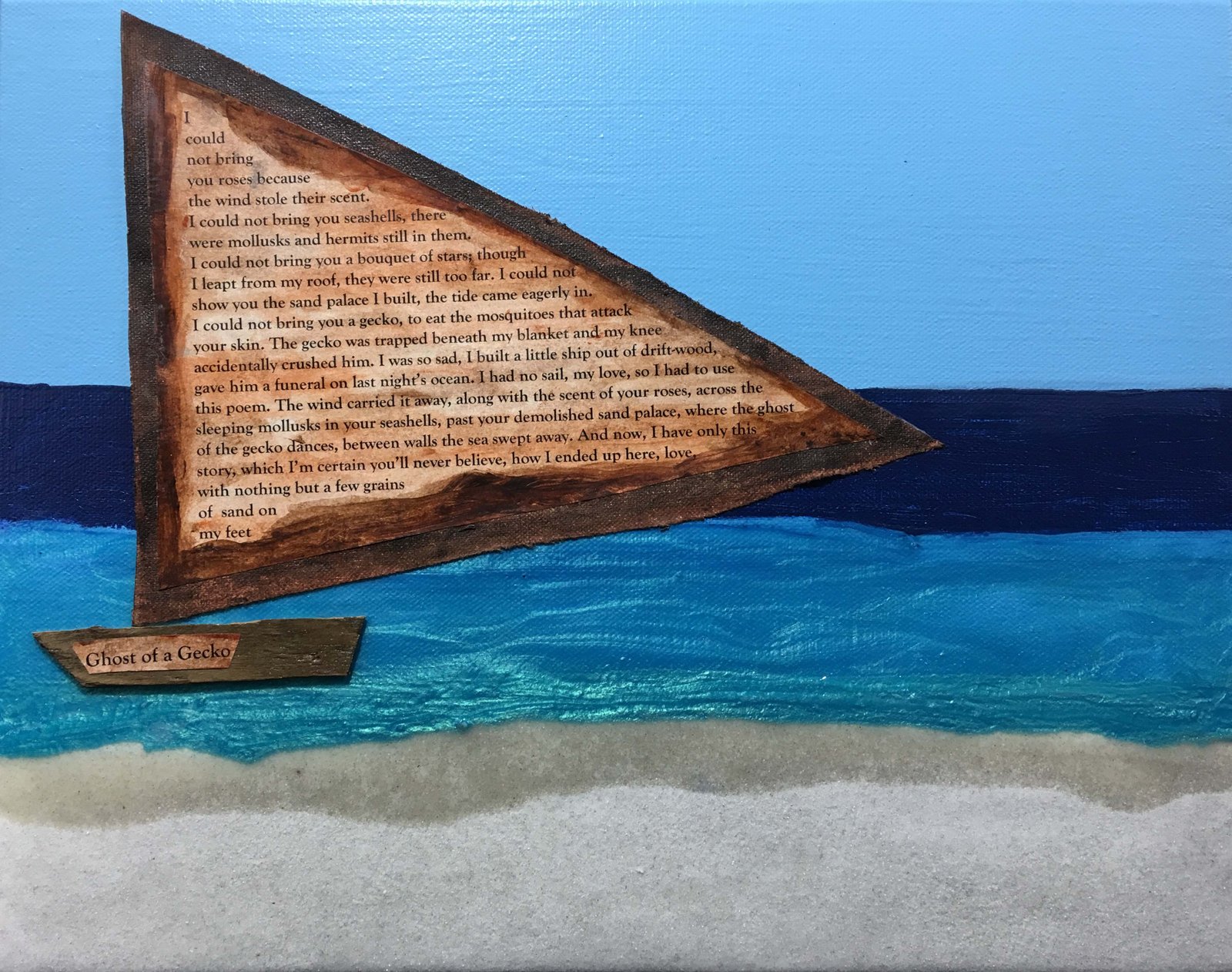 Previous ImageNext Image Ghost of a Gecko Sun Season Ghost of a Gecko Sun Season, 11 x 14″, $380, Mixed Media on Gallery Wrapped Canvas