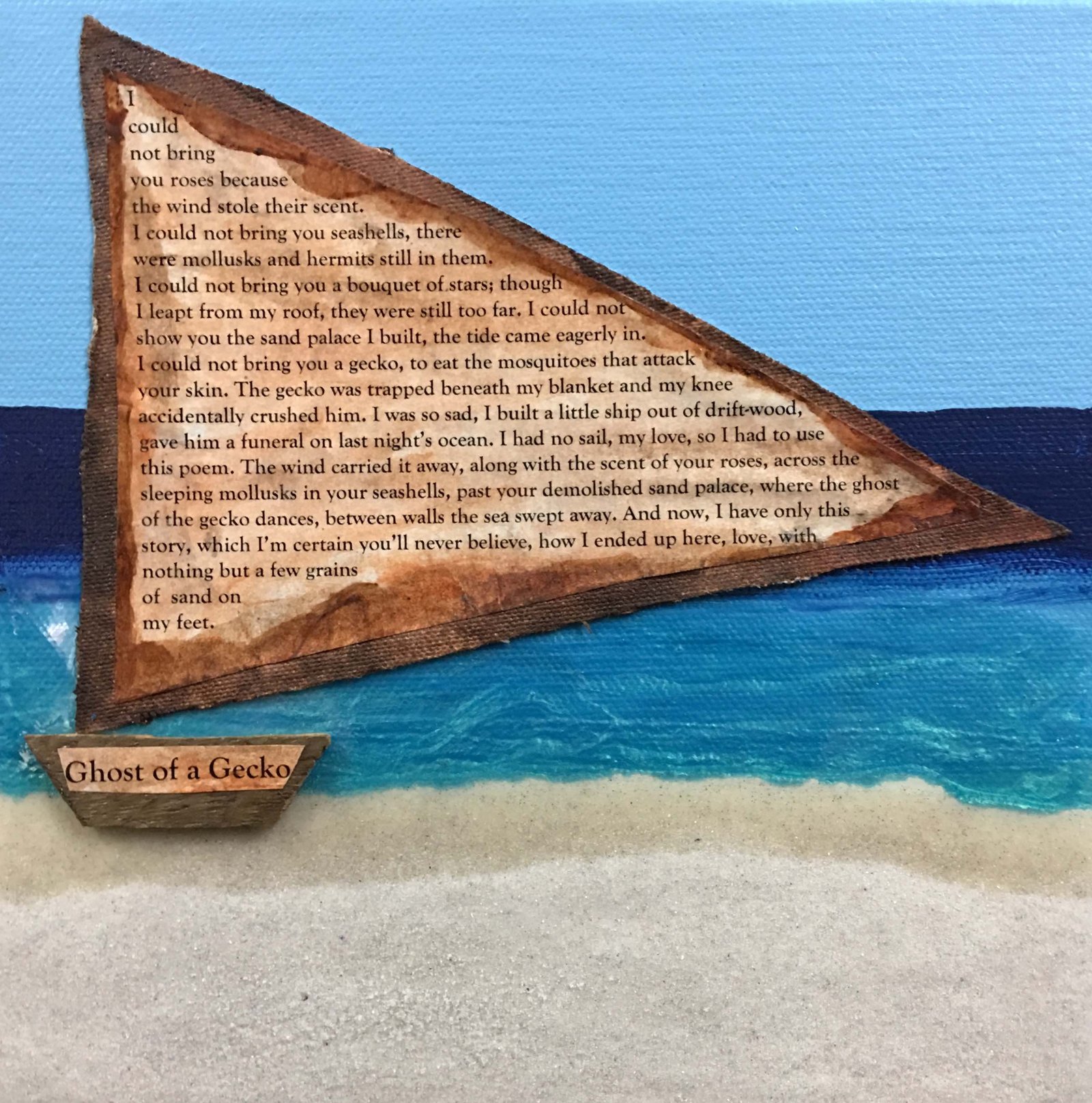 Previous ImageNext Image Ghost of a Gecko Tortola Wind Ghost of a Gecko Tortola Wind, 8 x 8″, $180, Mixed Media on Gallery Wrapped Canvas