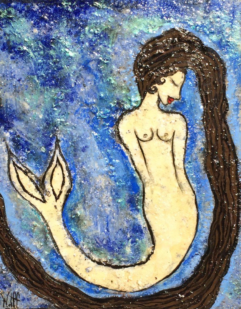 Previous ImageNext Image Umber Mermaid by Wolff Bowden *CURRENTLY AT GALLERY SHOWING*Umber Mermaid, 20 x 16″, $800, Polymer and Pigments on Gallery Wrapped Canvas