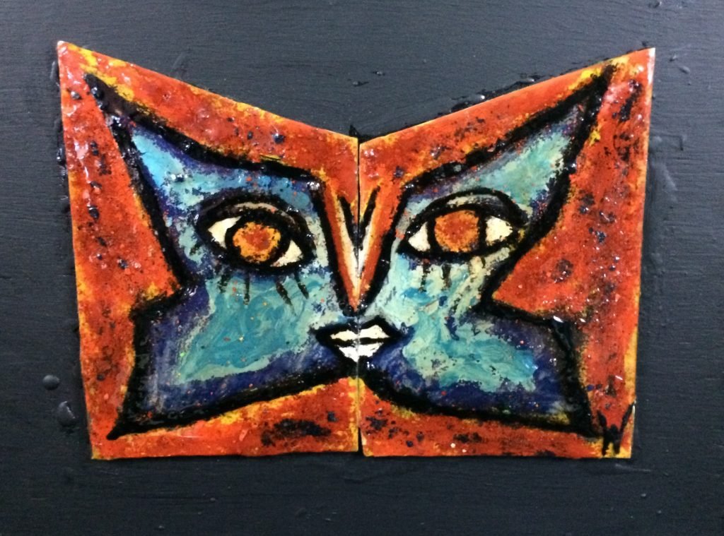 Previous ImageNext Image Blue Butterfly Mask by Wolff Bowden The Painted Poet Blue Butterfly Mask, Approx: 11×14″ HxW Mixed Media on Plexi (mounted on board) (No Frame Necessary)