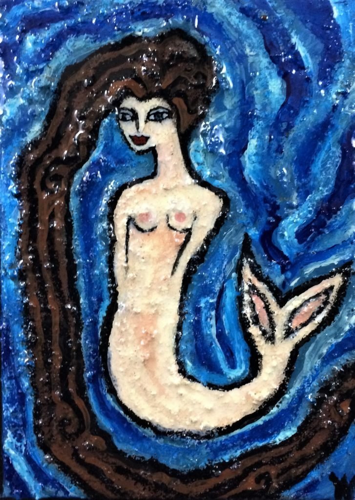 Previous ImageNext Image Blue Light Mermaid by Wolff Bowden The Painted Poet Blue Light Mermaid, 5×7″ HxW Mixed Media on Gallery Wrapped Canvas (No Frame Necessary)