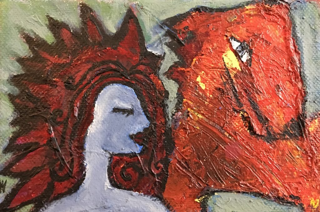 Previous ImageNext Image Dinosaur Goddess & The Red Horse 4 x 6 Dinosaur Goddess & The Red Horse, $65, 4 x 6”, Mixed Media on Gallery Wrapped Canvas