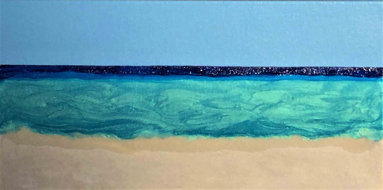 Previous ImageNext Image Shimmer Bay Shimmer Bay, 10×20″ HxW Mixed Media on Gallery Wrapped Canvas (No Frame Necessary)