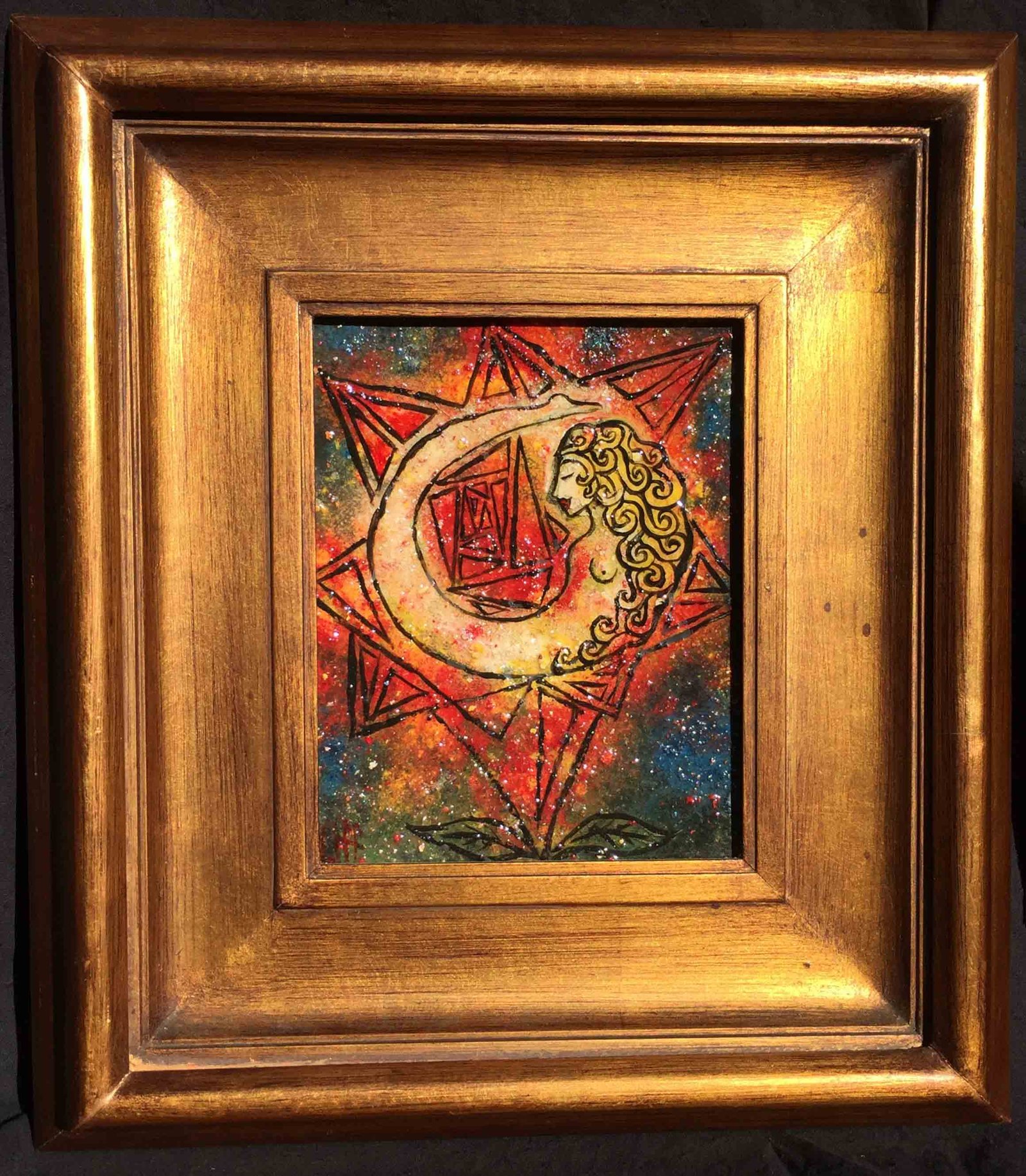 Previous ImageNext Image Woman Wrapped in Rose Framed ***SOLD***Woman Wrapped in Rose Framed, 10X8″ HxWMixed Media on Canvas Board(Frame Optional)