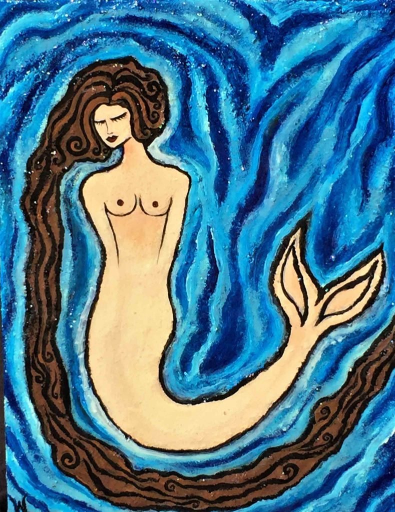 Previous ImageNext Image Night Tide Mermaid Night Tide Mermaid, 16X12″ HxW Mixed Media on Gallery Wrapped Canvas (No Frame Needed)
