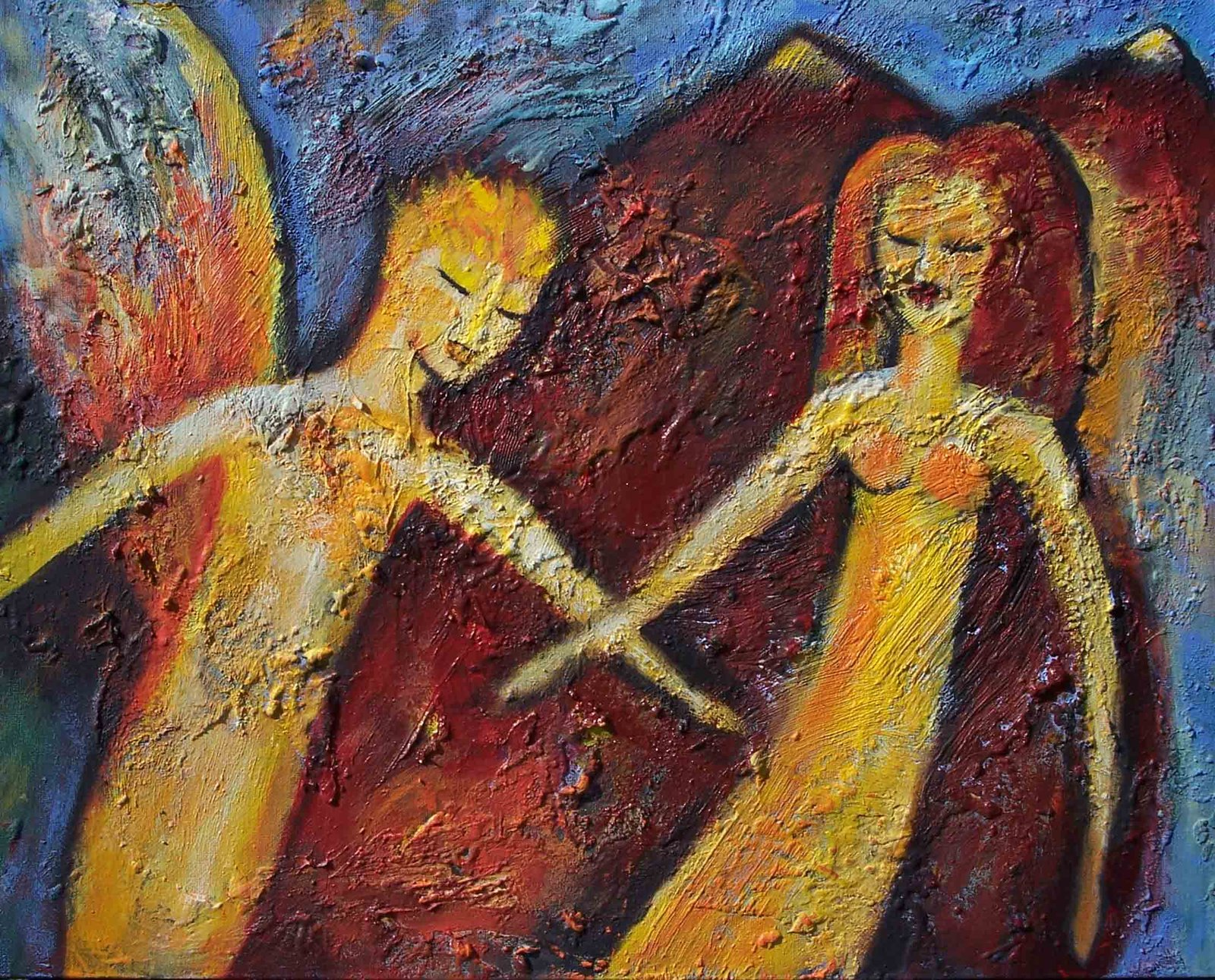 Previous ImageNext Image Fire Mountain Angels Fire Mountain Angels, 19×15″ HxW Mixed Media on Gallery Wrapped Canvas (No Frame Necessary)