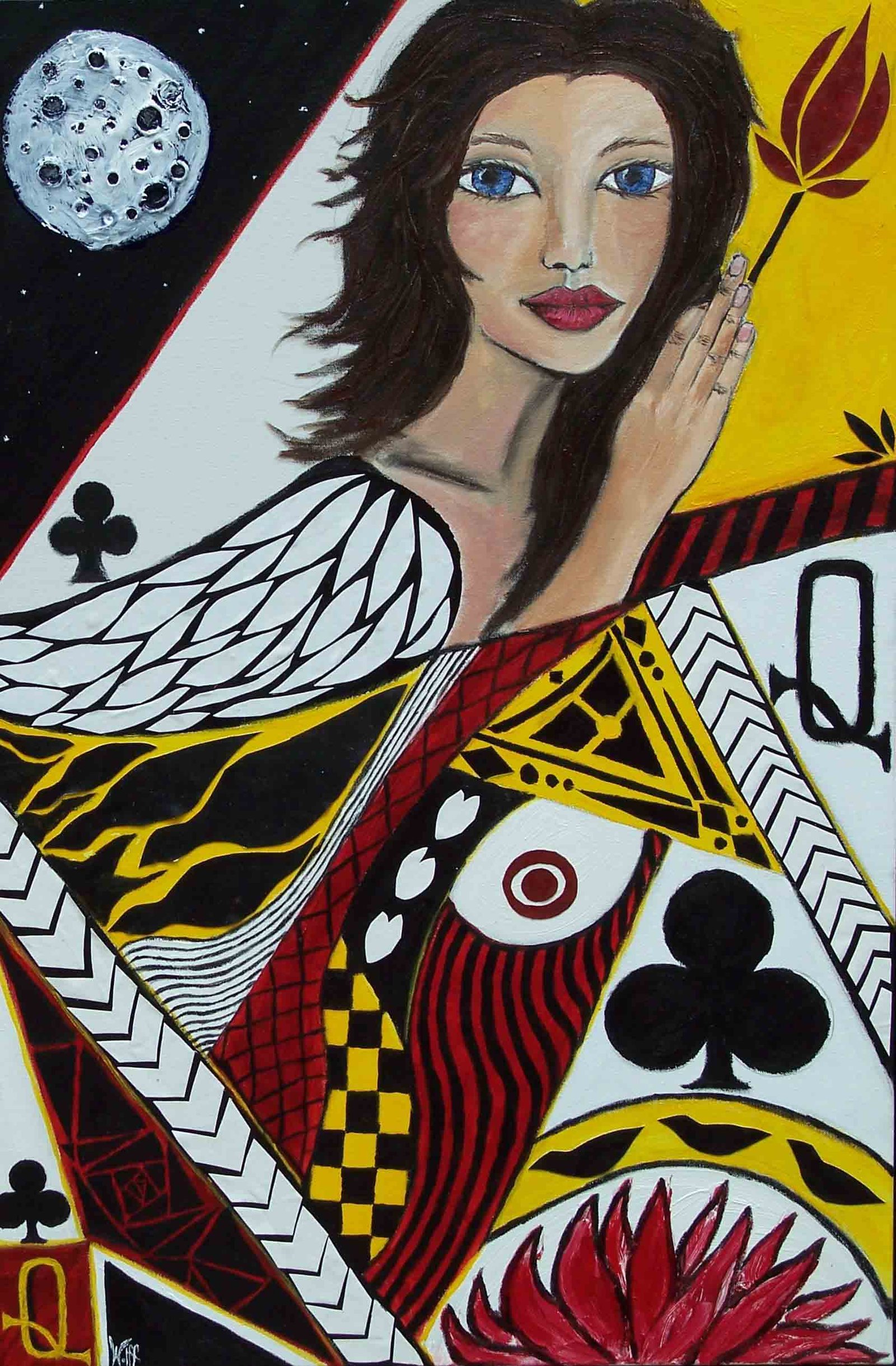 ***SOLD***Queen of Clovers, 36×24″, $2600, Mixed Media on Gallery Wrapped Canvas