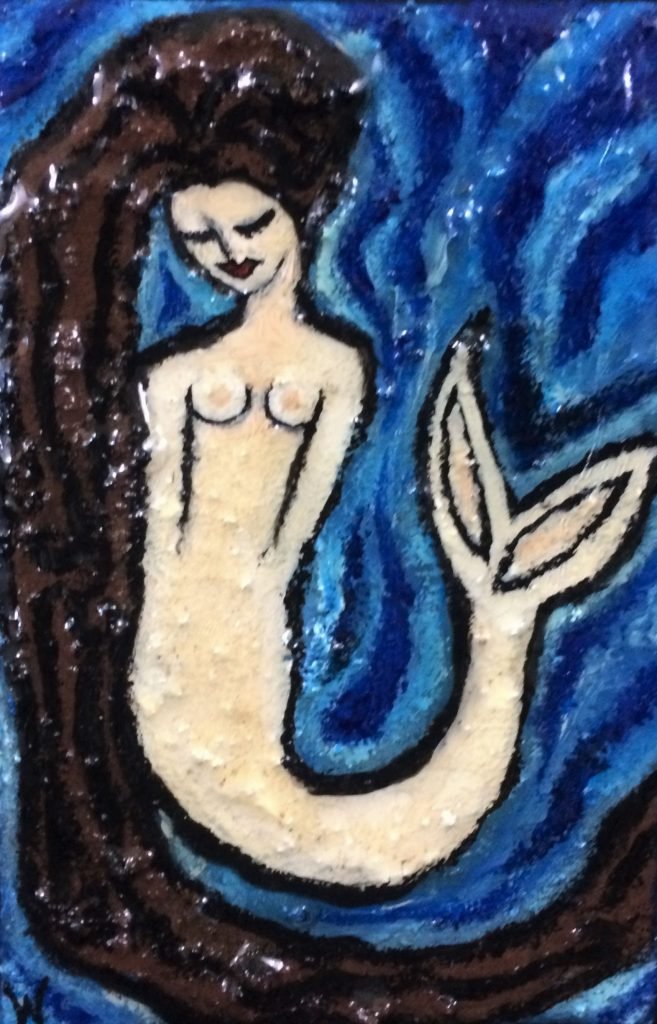 Previous ImageNext Image Meditating Mermaid by Wolff Bowden The Painted Poet Meditating Mermaid, 6×4″ HxW Mixed Media on Gallery Wrapped Canvas (No Frame Necessary)