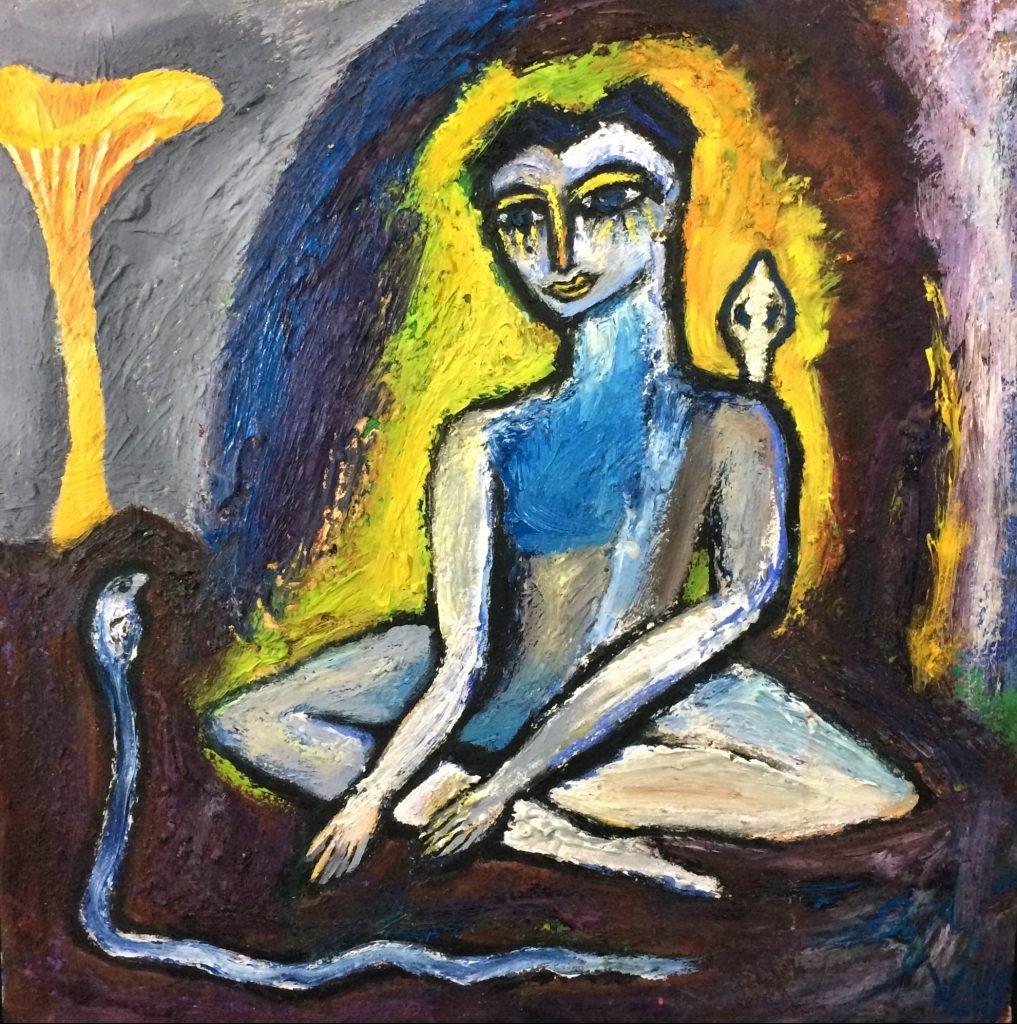 Previous ImageNext Image Siddhartha & The Chanterelles by Wolff Bowden The Painted Poet Siddhartha & The Chanterelles, 18×18″ HxW Oil & Acrylic, Unframed